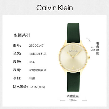 Calvin KleinCK手表永恒款皮带复古时尚石英女表小绿表女神节新年礼物25200147