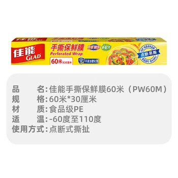 佳能 Glad 保鲜膜 手撕保鲜膜盒装60米x30厘米 PW60M