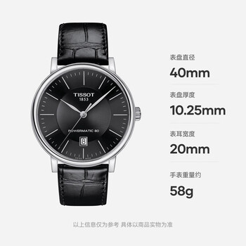 天梭(TISSOT) 卡森臻我系列男表 瑞士自动机械男士皮带腕表商务表生日礼物