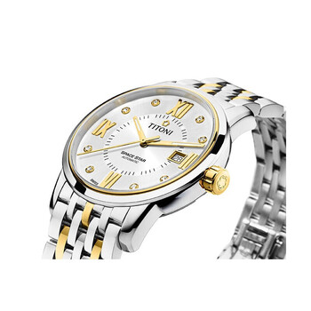 梅花(Titoni)瑞士进口手表 天星系列 自动机械间金钢带男士腕表 送男友礼物