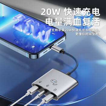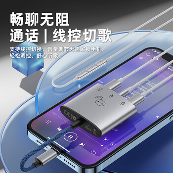 得语 苹果耳机转接头三合一充电听歌iPhone14 11 12pro 13 XS XR音频转换器分线器直播声卡游戏吃鸡语音连麦