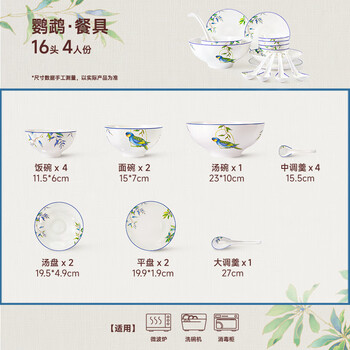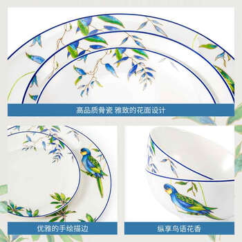 玛戈隆特 骨瓷餐具套装碗碟套装轻奢中国风碗盘碟勺礼盒包装鹦鹉16头4人份