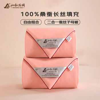 山水丝绸蚕丝被100%桑蚕丝二合一四季子母被子被芯喜被净重1+3斤220*240cm