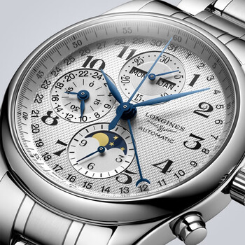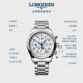 浪琴(LONGINES)瑞士手表 名匠系列计时码表 月相男士钢带机械表 L27734786
