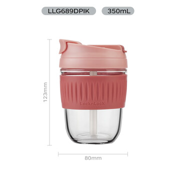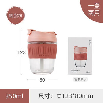 乐扣乐扣(LOCK&LOCK)咖啡杯耐热玻璃水杯子男女学生便携式双饮吸管杯随手杯350ML粉色