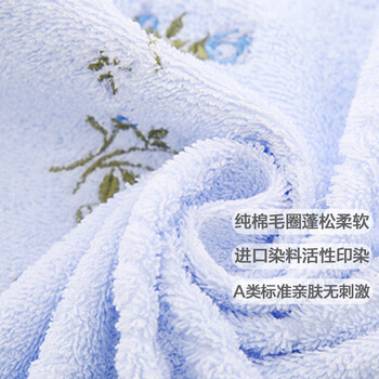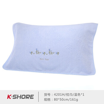 金号 素色绣花 纯棉枕巾 柔软透气单人枕巾 2条装 蓝色 50*80cm