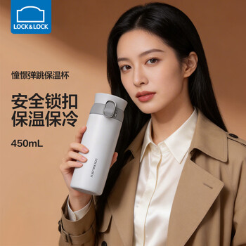 乐扣乐扣(LOCK&LOCK)憧憬弹跳保温杯316不锈钢保温保冷男女学生随手水杯子450ML灰色