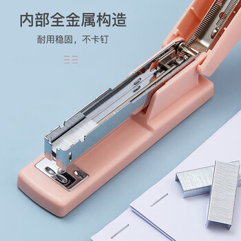 齐心(COMIX)12#学生办公订书机/订书器 莫兰迪色 20页 适用24/6、26/6钉 办公学习用品 珊瑚粉B3113