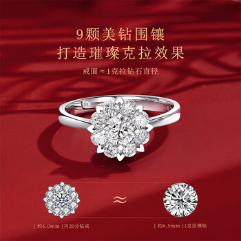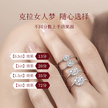 喜钻生日礼物女人花PT950铂金钻戒钻石戒指求婚50分效果