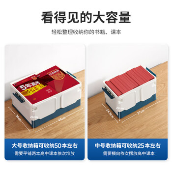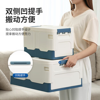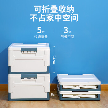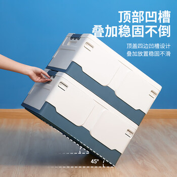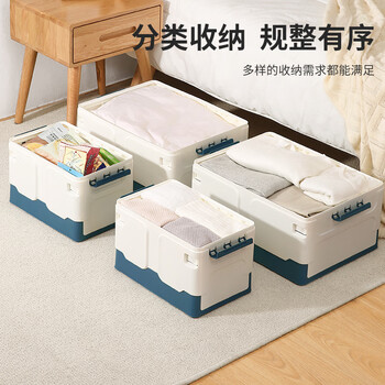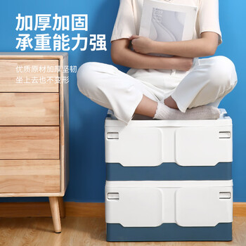 LYNN收纳箱 可折叠塑料书箱衣服玩具整理箱40L 蓝白1个装