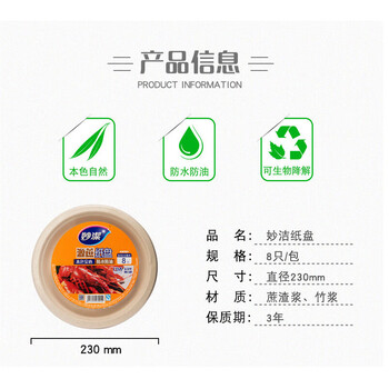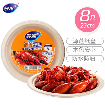 妙洁 一次性盘子 8只装 源蔗纸盘 本色安心 盒饭盘碗筷厨房餐具烧烤碟