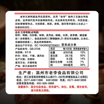 老李食品 五香卤鸭腿100g/袋 真空包装 卤味鸭货小吃零食即食下酒菜