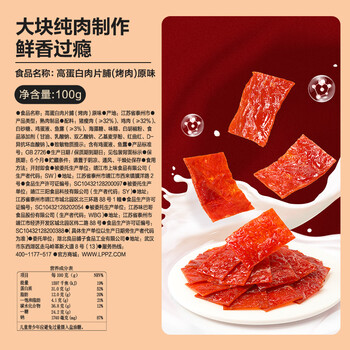 良品铺子高蛋白肉片脯烤肉原味100g靖江风味肉脯肉干休闲零食随机