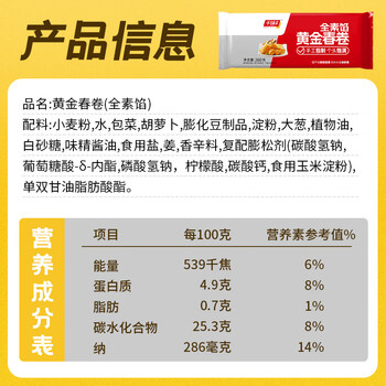 千味央厨黄金春卷全素馅260g*4袋共64个早点早餐食品半成品油炸小食主食