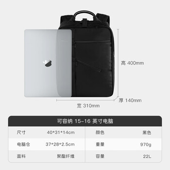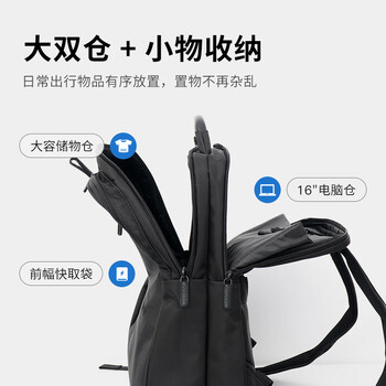 乐上(LEXON)双肩包电脑包15.6/16英寸笔记本背包男双隔层书包旅行防泼水黑色