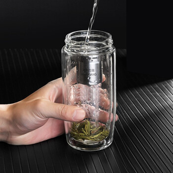 万象(WANXIANG)双层玻璃杯送男友便携茶水杯V17L商务办公大容量360ML带滤网水杯