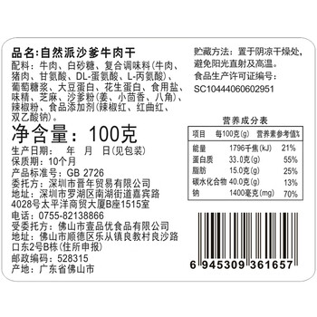 自然派沙爹牛肉干即食风干 牛肉脯广东老字号特产年货休闲零食