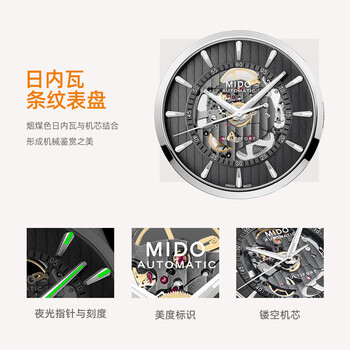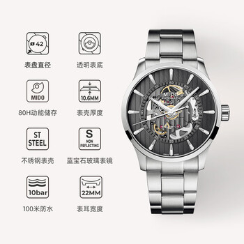 美度(MIDO)瑞士手表 舵手系列 镂空款 长动能 商务休闲 机械钢带男表
