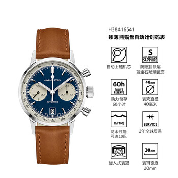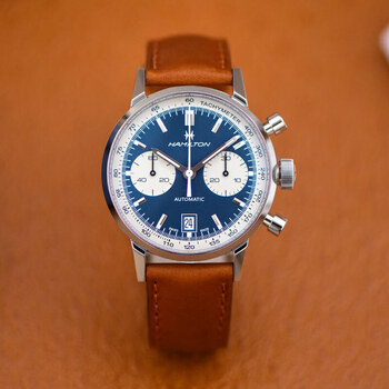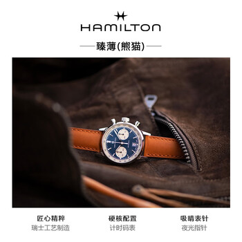 汉米尔顿(Hamilton)经典臻薄熊猫盘计时码表40蓝盘皮带男士腕表瑞士自动机械表