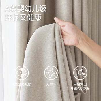 金蝉现代简约日式成品窗帘布客厅卧室全遮光窗帘打孔式奶茶色 250*245