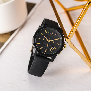ARMANI EXCHANGE手表男士黑武士三眼表盘石英腕表生日礼物送男生AX7105