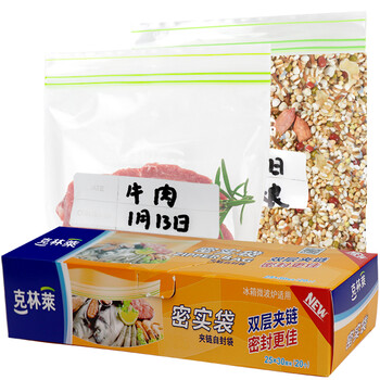 克林莱双层夹链密实袋自封袋盒装食品保鲜标签幼儿园收纳25*30cm20只