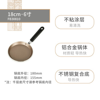 法焙客平底锅不粘锅 千层班戟可丽饼煎饼锅 圆形早餐锅蛋卷锅 18CM
