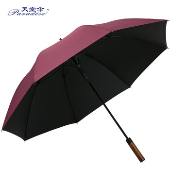 天堂伞 特大防雨黑胶防晒70cm*8骨直杆商务伞晴雨伞 13037E 紫红色