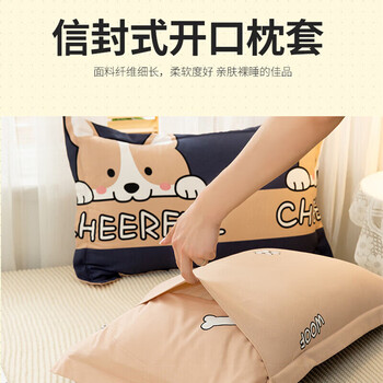 艾薇枕头套74*48儿童枕套水洗棉枕头枕套一对 数码狗 48*74cm
