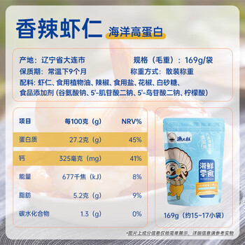 渔大叔 海鲜零食即食虾仁28-32只虾高蛋白即食海鲜休闲零食66虾169g