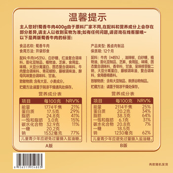 三只松鼠蜀香牛肉麻辣味400g礼盒装四川零食混发夜宵解馋牛肉干肉脯