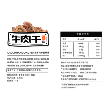 老川东 香辣牛肉干100g*1袋