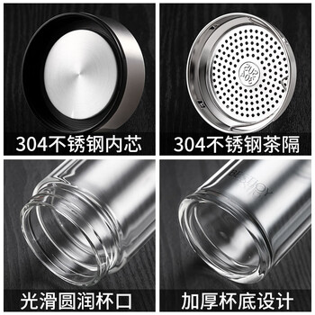 富光拾喜双层玻璃杯防烫茶杯直身商务车载便携带滤网大容量办公杯子800ml