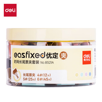 得力8521A时尚长尾票夹套装(混)(筒)*1