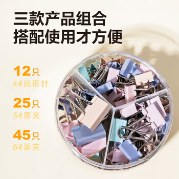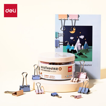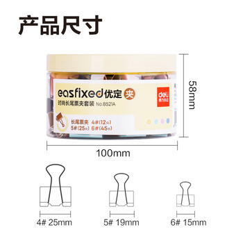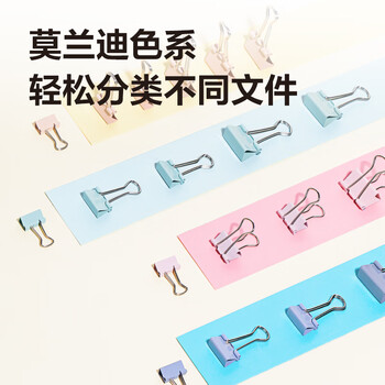 得力(deli)【全网低价】得力82只莫兰迪色多规格票夹彩色长尾夹 (25mm12只 19mm25只 15mm45只)/筒8521A