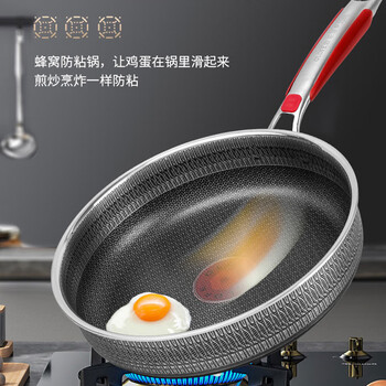 欧乐菲(OLOFE)316L不锈钢平底煎锅双面蜂窝不粘早餐牛排烙饼烤肉煎蛋锅蓝钻28cm