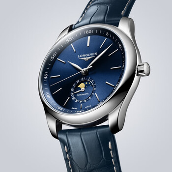 浪琴(LONGINES)瑞士手表 名匠系列月相腕表 男士皮带机械表 L29094920