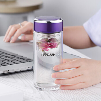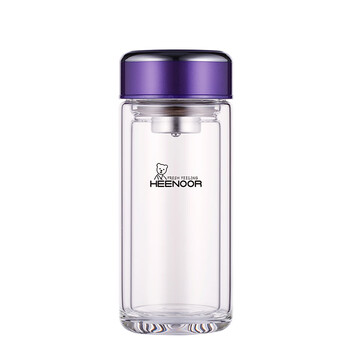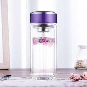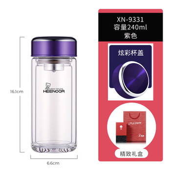 希诺双层玻璃杯家用办公水杯女高颜值过滤泡茶杯子XN-9331紫色 240mL