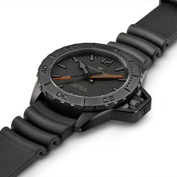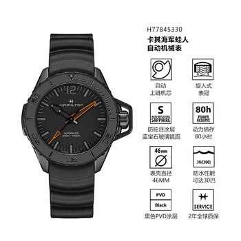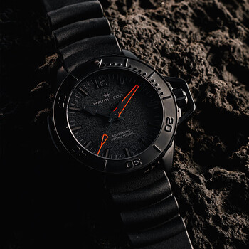 汉米尔顿(Hamilton)卡其海军蛙人46黑盘黑色橡胶带 瑞士手表男士机械表潜水表男款