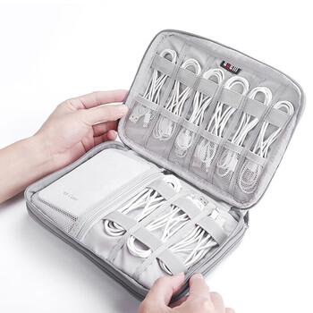 BUBM 耳机数据线收纳包数码多功能电源充电器盒硬盘U盘旅行便携整理袋 小号双层DISD-MYB