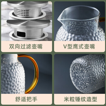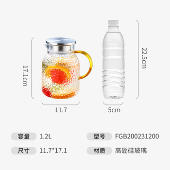 富光耐热玻璃凉水壶大容量家用果汁杯花茶杯茶壶冷水壶锤纹壶1200ML