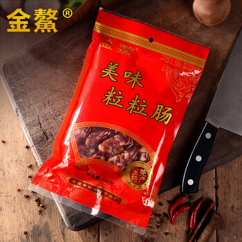 金鳌,广东老品牌,数十载匠心坚守,只为一根真材实料的好腊肠。美味粒粒肠,精选优质猪肉,秉承四肥六瘦黄金比例,肉粒饱满,色泽红润,色、香、味俱全。每一口,都是记忆里挥之不去的经典广式家乡味。
