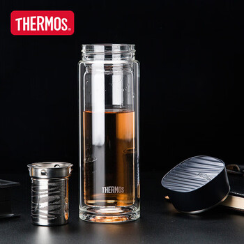 膳魔师(THERMOS)双层玻璃400ml男女水杯茶杯水纹行者带茶漏杯TCGB-400-D-BK 黑色