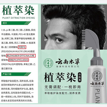 纯春堂云南本草染发剂植物盖白头发男士染发膏纯黑无刺激不沾头皮染发梳