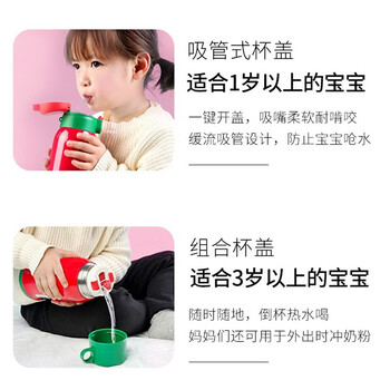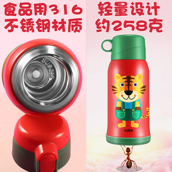 cuipo儿童保温杯带吸管两用宝宝户外316不锈钢保温水杯600ml 红色老虎