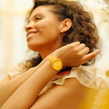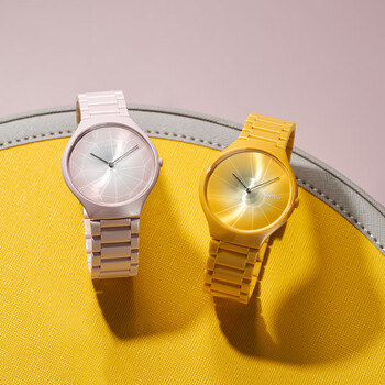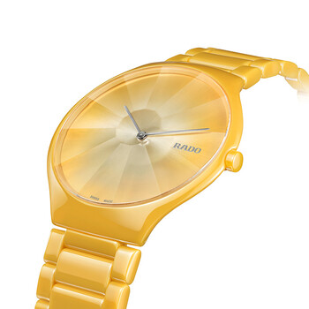 雷达(RADO)瑞士手表真薄系列女士陶瓷石英表曜日黄时尚潮流