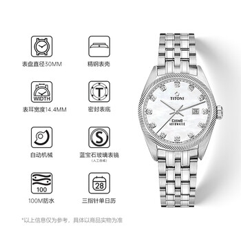 梅花(Titoni)瑞士手表 宇宙系列 自动机械钢带女士进口腕表 30mm818-S-622礼物