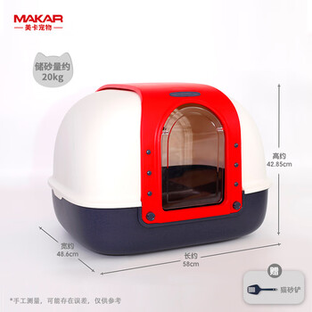 美卡时尚龙门客栈全封闭猫砂盆 特大号双翻盖猫厕所隔臭防外溅正红色