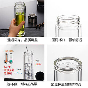 天喜(TIANXI)玻璃杯 双层加厚水杯男女士带茶隔泡茶杯子350ml*1