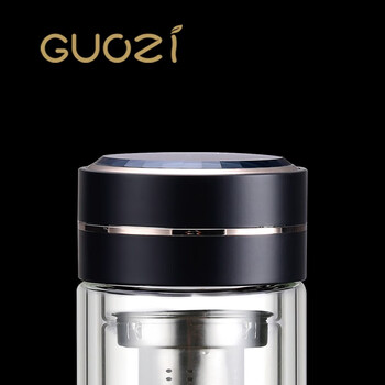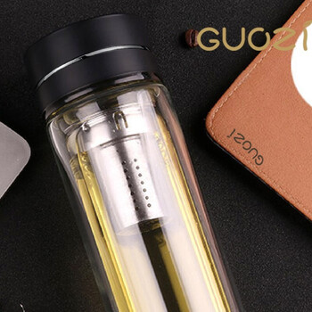果兹(GUOZI) GZ-S55-320 朗仕双层玻璃杯 简约商务风便携式泡茶杯过滤隔热办公水杯冷水杯子 320ml 单个装